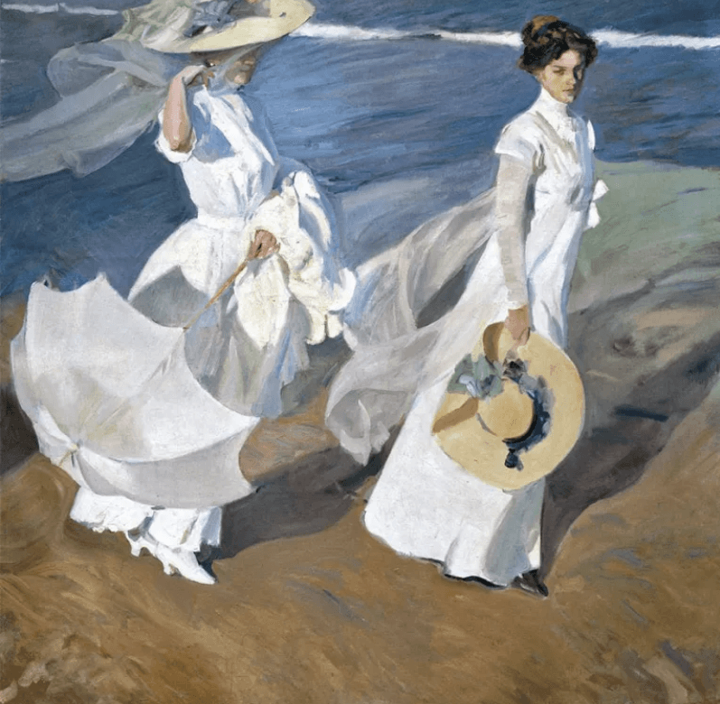 소로야는 빛을 다루는 데 천재적인 재능을 가졌습니다. 실제로 그는 '스페인의 모네'라는 별명도 얻었지요. ‘조업에서 돌아온 배’, ‘해변의 산책’, ‘물놀이가 끝나고’ 등 그의 대표작은 모두 태양의 빛이 어떻게 물결 위에서 반사되고, 인물의 피부를 스쳐 지나가는지를 놀랍도록 섬세하게 표현합니다. 그의 붓은 빛을 따라 흐릅니다. 그림을 보는 순간 여러분도 그 바닷가에 있는 것처럼 느낄 수밖에 없습니다.